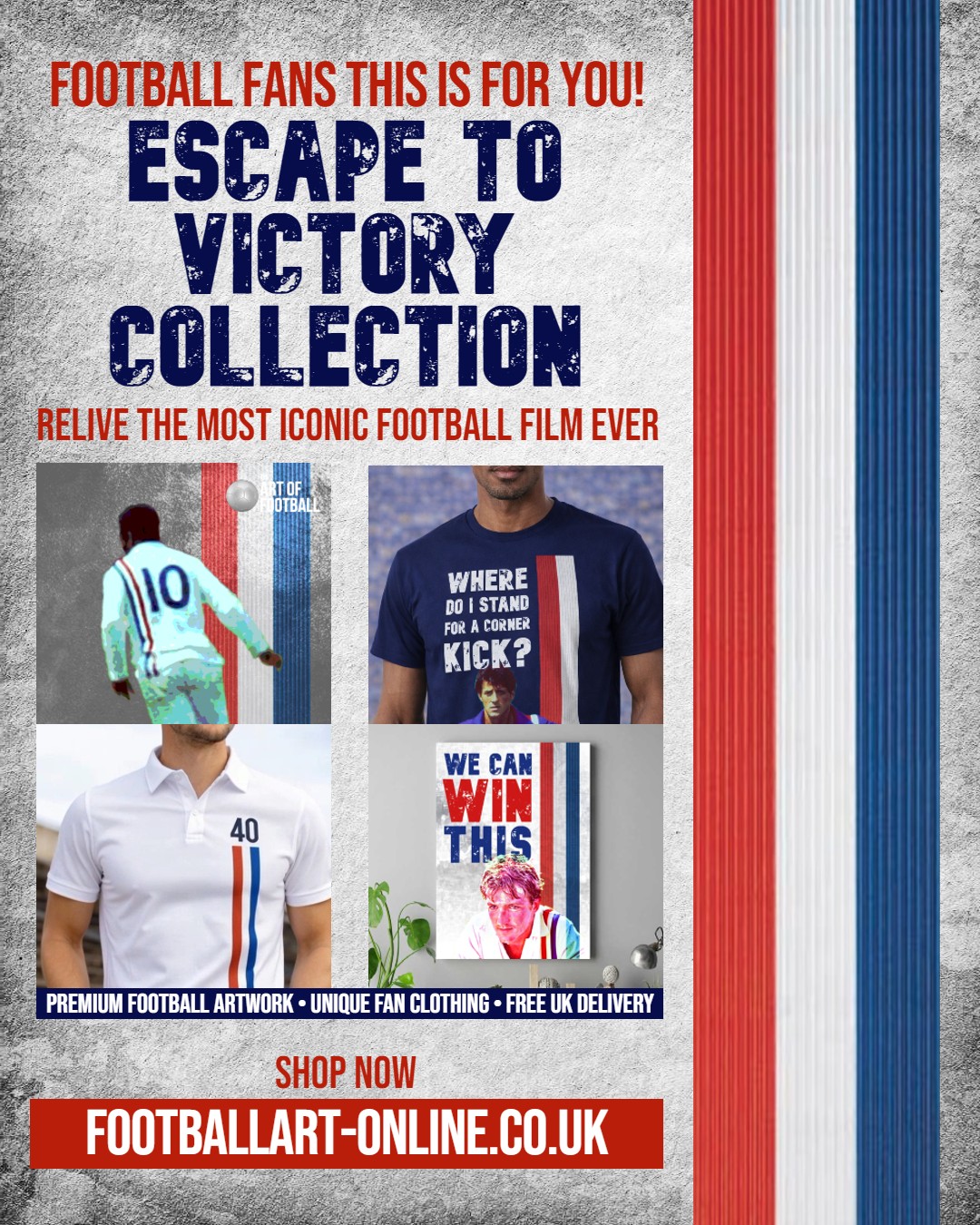 Whether you’re decorating a home office, football room, or looking for a unique gift, you can explore a curated range of Escape to Victory-inspired art prints and products from Football Art Online here: