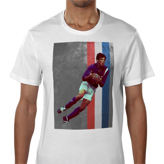 Celebrate one of the most legendary moments in football cinema with this Escape to Victory Sylvester Stallone Hatch Iconic Image T-Shirt. Inspired by the cult classic film, this design captures the unforgettable character Robert Hatch, played by Sylvester Stallone, in the dramatic prisoner-of-war football match against the German team.