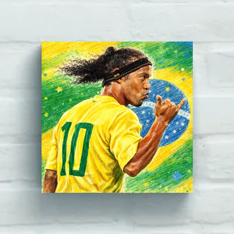 Bring the magic of football into your home with our stunning Ronaldinho Brazil Football Legend Square Canvas Print. Measuring a generous 20 x 20 inches, this canvas print captures the essence of one of the greatest footballers of all time, Ronaldinho. Known for his dazzling skills, infectious smile, and unparalleled creativity on the pitch, this artwork is a tribute to his legendary status in the world of football.